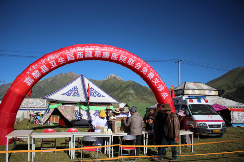 义诊是西藏阜康医院发展有限公司自成立以来就有的良好传统,一直保留的对老百姓有切身利益的公益活动。2015年7月20日,嘉黎县县政府对西藏阜康医院及嘎布院长发出邀请,同时,又收到申扎县县委县政府的真诚邀请,邀请西藏阜康医院参加他们一年一度的盛大隆重的节日---赛马节。这对我们来说是一份荣誉,也是一份责任。经过董事会的批准,医院多方协调准备,由嘎布院长亲自带队,内科医生丹增,外科医生琼玛,护理组次仁,医保办阿珍,驾驶组巴次、小索朗共7人组成的西藏阜康医院义诊队成立。7月25日早上8点,西藏阜康医院义诊队带着医院的嘱托、8万元的药品分别向嘉黎县、申扎县出发。经过一天的长途跋涉,天黑才抵达目的地。当晚义诊队不顾一路的颠簸劳累,马上开始义诊的准备工作:搭帐篷、桌子、凳子、各种药品的分类及医生看病所需的器械,一直忙碌到夜里11点。