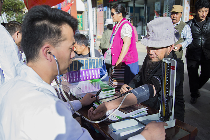 自14日早上九点活动开始,前来阜康医药义诊宣传点测血压、测血糖、咨询身体健康问题及安全用药知识的人便络绎不绝,整整一上午,阜康医药16名医护人员都在一刻不停的忙前忙后,但能够为广大藏族同胞及社会群众服务,大家都丝毫不觉得辛苦,反而发自内心的感到充实与喜悦。据活动结束后统计,本次活动西藏阜康医药发展有限公司免费发放各类相关资料千余份,免费发放维生素、钙片、风湿及心脑类等药品一万两千余元,免费测血压、血糖、看病等也多达数百人次。