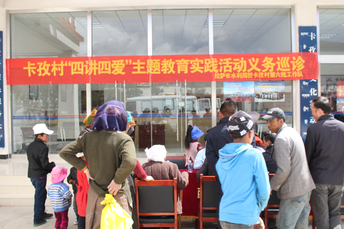 为关爱卡孜村农牧民群众的身心健康,提高群众防病治病意识和医疗健康水平,进一步落实“四讲四爱”主题教育实践活动,6月4日,工作队主动联系西藏阜康医院到卡孜村开展义诊活动,对卡孜村农牧民群众集中体检诊疗。