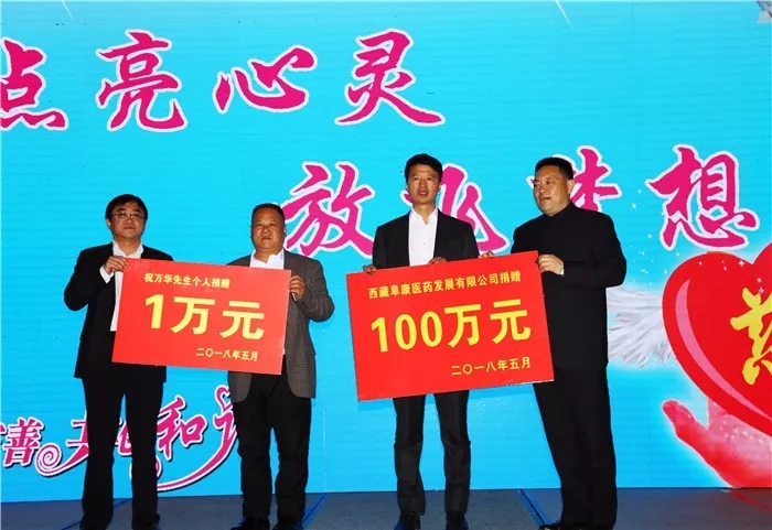 王斌同志代表西藏阜康医药发展有限公司捐款100万元