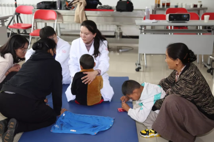 康复医学科万晨老师给孩子们做康复指导