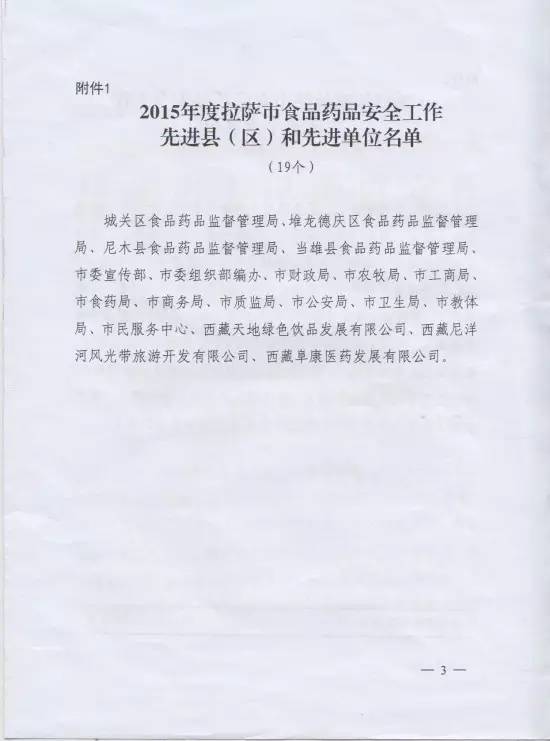 本次会议还就2015年度在全市食品药品安全工作中表现突出的市农牧局等19个县(区)、单位给予了表彰。西藏阜康医药发展有限公司也因在2015年食品药品监督管理工作中表现突出荣获表彰并获得“2015年全市食品药品安全工作先进集体”荣誉称号。刘潇潇总经理代表阜康医药发展有限公司接受了本次表彰。她表示阜康医药发展有限公司能够获得本次表彰是整个阜康的骄傲,在今后的工作中我们一定会珍惜荣誉,再接再厉,充分发挥示范带头作用,努力再创工作佳绩,为西藏食品药品安全作出自己的贡献。