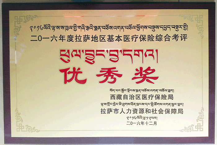 拉萨地区基本医疗保险综合考评中荣获“优秀奖”