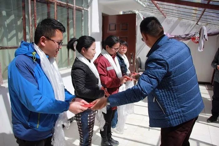离开自己熟悉的工作环境,远赴条件艰苦的阿里地区进行包虫病筛查工作,在这欢度国庆、中秋团圆的节日里,医疗小分队成员们依然坚守在自己的岗位,以实际行动诠释着“吃苦奉献”的阜康精神。格桑拉吉技师与刘亚美护士见到久违的院领导和同事,难以掩饰对家人和同事们的思念之情,与大家紧紧相拥。党委副书记、副总经理陈彬同志与两位医务工作者进行了亲切的交谈,对大家的辛勤工作表示感谢,随后为她们献上哈达,送上慰问品与慰问金每人1000元,并祝愿大家及亲人节日快乐!