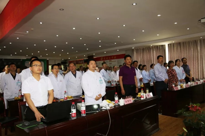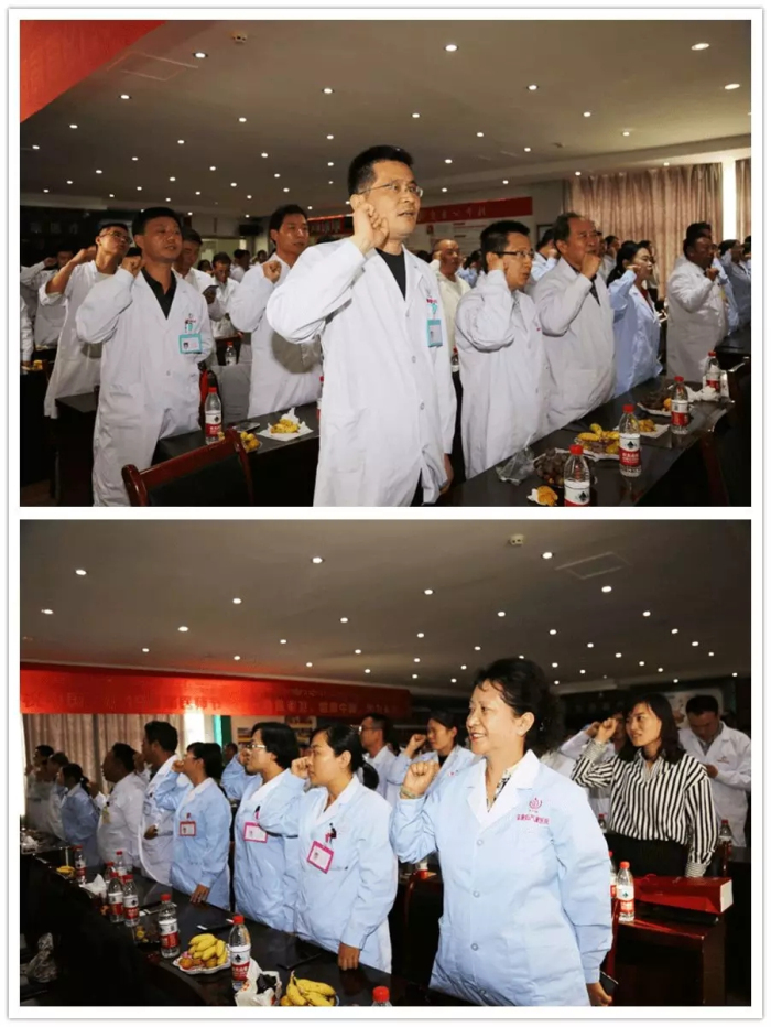 2018年8月19日,西藏阜康医院200多名医生和院领导在阜康妇产儿童分院4楼会议室重温希波克拉底誓言,隆重庆祝中华人民共和国第一个“中国医师节”。美中宜和标准化中心汪丽,西藏阜康医疗股份有限公司党委书记、董事长王斌,公司副书记、副总经理陈彬,西藏阜康医院总院长孙贵林,业务院长李君,西藏阜康医疗董事会秘书李勇,西藏阜康医院业务院长何静,院长助理李丽等出席会议。