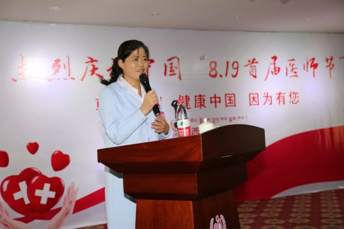 李君代表全院医务工作者对习近平总书记和党中央的正确决策表示衷心拥护,对医院组织本次庆祝活动表示感谢。她说本次活动让全体医师感受到了自己职业的高尚,享受了节日快乐,增强了工作自豪感。随着全区社会经济的不断发展,人民群众对医疗健康的要求不断提高,这就需要我们广大医师时刻胸怀仁爱之心,坚持阜康“用我们的知识和良知为人类健康服务”的办院宗旨,用我们的特色和优势服务好每一位患者。无论在枯燥的日常工作中、还是在每一次灾难来临时,用我们的爱心和技术体现自己的职业价值。