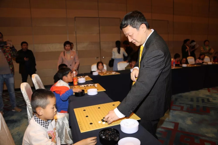 最后,齐扎拉主席、林建超主席、朱国平主任、曹大元名誉院长共同为2018年华为手机杯中国围棋甲级联赛壮美“第三极”西藏专场落子开棋。