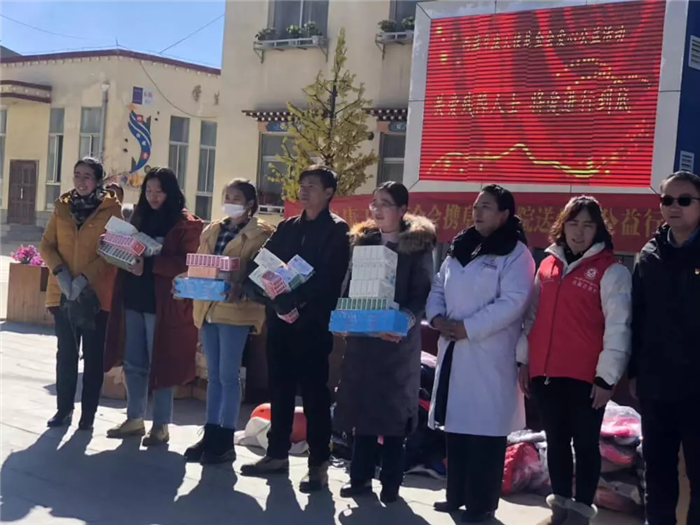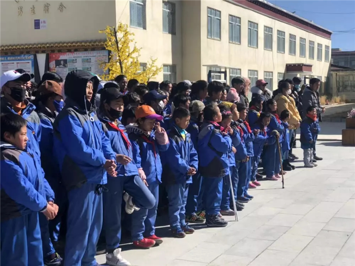 11月1日上午,西藏阜康天使基金会吉拉女士受西藏阜康医疗股份有限公司党委书记、阜康天使基金会会长王斌先生,西藏阜康医疗股份有限公司总经理、阜康天使基金会秘书长刘潇潇女士委托与西藏阜康医院义诊队一起,携价值一万五千元的药品和两万元的物资来到那曲市特殊教育学校,为这里的孩子们带来了文化体育学习用品及药品等物资。在特校校长次仁拉姆的组织下,特校师生列队欢迎我们的到来,还精心准备了锦旗和洁白的哈达。
