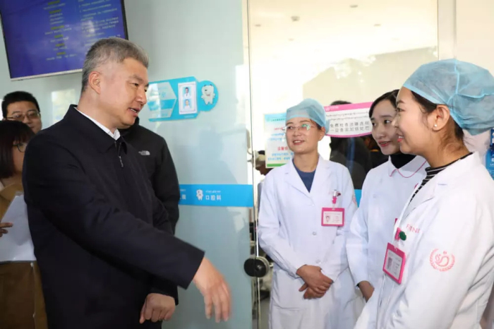 在妇产儿童分院口腔科,庄严书记见到了今年刚从内地毕业回藏工作的大学生强巴卓嘎。强巴卓嘎告诉庄严书记,自己在内地读了5年口腔专业,在阜康工作很开心,收入也不错,现在有越来越多的同学愿意到民营企业工作。庄严书记勉励强巴卓嘎认真学习临床技术,要不断学习深造,提高自己专业技能,无论在公立医院还是民营医院工作,都是在为百姓的健康服务。