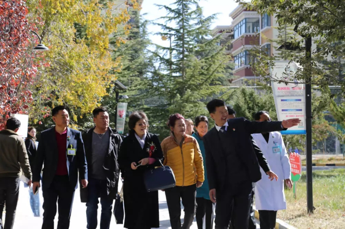 西藏阜康医疗股份有限公司党委书记、董事长王斌陪同自治区领导参观阜康院区,并为自治区领导作了详细介绍