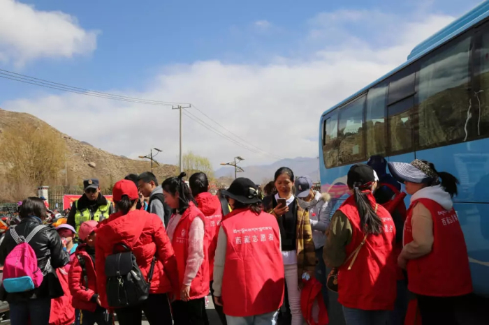 志愿者们乘车前往色拉寺