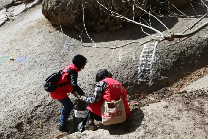 这时基金会的工作人员及时给大家发放了手套和垃圾袋。上山途中,同事们一边享受着爬山带来的乐趣,一边把沿途的垃圾捡起放在事先准备好的垃圾袋中,并将可回收垃圾和不可回收垃圾进行分开收集。因为山路崎岖,本次活动还准备了急救箱,以防在爬山过程中出现身体不适等意外情况。