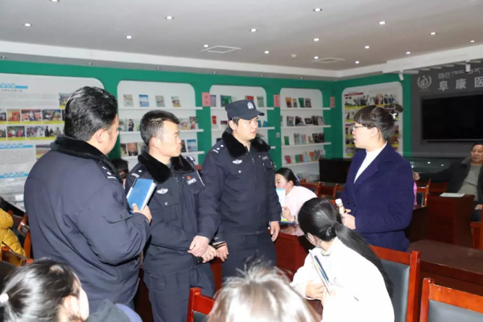城关区公安局两岛派出所副所长罗布旺堆、治安中队长李治平对阜康医疗长期以来重视法制建设与宣传、积极支持配合公安机关的工作表示感谢。希望阜康医疗广大医护人员更好地利用法律武器保护自己的合法权益,在临床一线工作中遇到纠纷时要注意保护好相关证据,并及时报警防止事态扩大。医院安保人员作为处置突发事件的第一力量,要及时对现场情况进行有效控制,为公安人员的后续工作赢得必要时间。