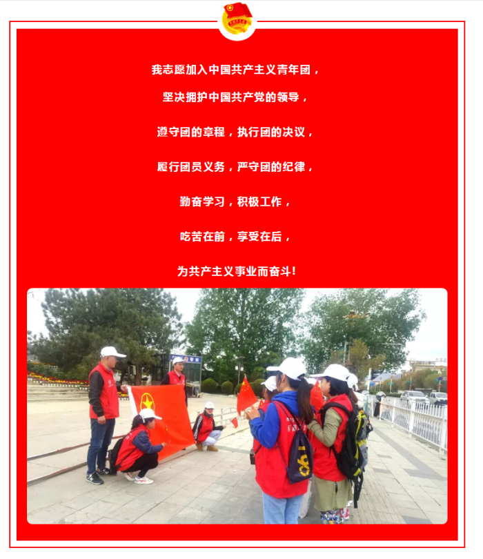 上午9时,公司共产主义青年团全体成员在纪念碑前重温中国共产主义青年团入团誓词:
