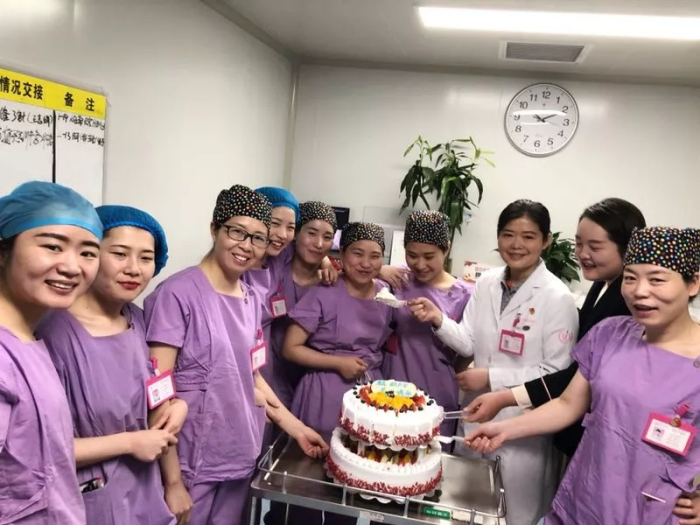 之后,大家一起吹蜡烛,一起切蛋糕,此时再多的艰辛换来的是我们美丽助产士真诚的笑脸,眼里带着泪花,此刻她们的付出与坚守是值得的。
