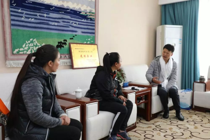 2019年5月14日上午,嘉黎县扶贫办主任、脱贫攻坚指挥部办公室副主任才旦卓嘎和嘉黎县脱贫攻坚指挥部转移就业组负责人(副组长)卓央开车经过七个多小时的长途跋涉来到我院,只为亲自献上洁白的哈达,送来所有乡亲们的问候和祝福,向阜康和王斌董事长表达深深的感激之情!
