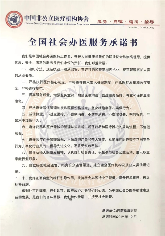 - · 热烈庆祝西藏阜康医院当选为中国非公立医疗机构协会健康体检分会首届常委单位