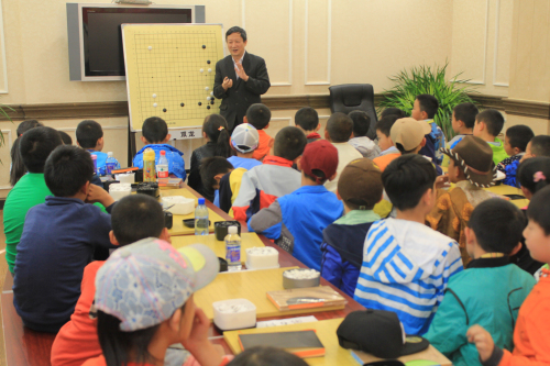 颁完奖项,本次拉萨市2015年“阜康杯”少儿围棋锦标赛也落下了帷幕。最后,我们有幸请到了国手九段的曹老为我们拉萨棋院的小棋手们讲课,课上,一位位小棋手们端正坐好,聚精会神地聆听着曹老讲 课,生怕错过什么内容。而曹老亲切祥和的细微讲解,加之其不时跟小朋友们提问、互动,也让得这节特殊宝贵的课堂变得其乐融融!感谢曹老于百忙之中抽出时间为我们的小棋手讲课,相信我们的小棋手们在这样一节课堂中,必然受益良多。