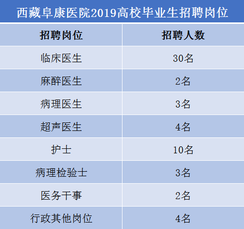西藏阜康医院2019年应届高校毕业生招聘工作已全面展开,现定于 2019年7月1日举行应届本科毕业生集中面试,面试通知工作已陆续展开,欢迎各临床医学专业应届本科毕业生踊跃参加。详情如下: