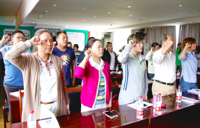 之后,敖德秀同志又带领全体党员、预备党员、积极分子逐字逐句温习党章和党誓,并举行了做合格共产党员,亮证挂牌活动仪式。