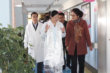 早早的我院便迎来了第一位节日慰问的领导,自治区妇联白珍副主席,她亲切地握着护士的手连声说:“护理工作很辛苦啊,病人是不是也很难照顾啊,你们奋战在医疗一线岗位,你们才是最美的天使,你们守护了人类的健康,祝你们节日快乐”。