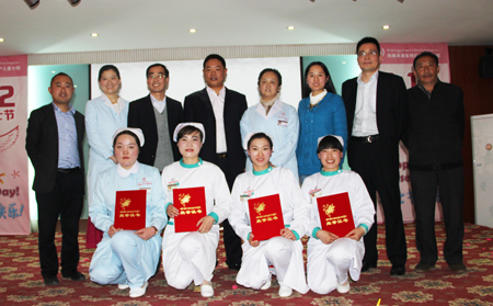 下午是“5.12国际护士节”庆祝活动,同去年一样例行勤俭节约只是搞了一个简单地茶话会,但是满桌的水果,粉红色的节日慰问语,美丽的鲜花都是院领导对护士姐妹们最由衷的节日慰问。本次庆祝活动刘潇潇总经理、陈彬总经理、张德才院长、敖德秀副院长、刘连福副院长、李君副院长、张治副院长应邀出席,他们纷纷致辞感谢全院护士这一年的辛苦工作,并对她们寄予厚望,希望白衣天使们,铭记“患者需求至上、团队精诚协作”的院训,紧跟时代步伐,克服护理工作量大、人员紧张等诸多困难,齐心协力,努力工作,再创佳绩。