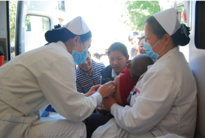 为认真落实科学发展观,切实做好我区麻疹疫苗强化免疫以及巩固我区无脊髓灰质阶段性成果,防止脊髓灰质炎病毒输入并引起传播,最大限度地保护我区儿童的身体健康,根据自治区卫生厅文件《关于开展麻疹疫苗和脊髓灰质炎疫苗强化免疫活动的通知》 (藏卫发[2009]98号)文件要求, 阜康医院于5月7日组织13名医务人员为金珠西路片区32名0一6岁的儿童免费接种了麻疹疫苗,为14名0- 3岁的儿童免费接种了脊髓灰质炎疫苗。