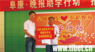 2008年8月29日下午,“阜康奖学金.晚报助学行动”活动组委会在西藏阜康医院会议室举行捐助仪式,西藏16名品学兼优的贫困学生获得了每人每年6000元的捐助,解决了他们大学四年的生活费,至此,为期两个多月的“阜康·晚报助学行动”爱心捐助活动画上了圆满的句号。
