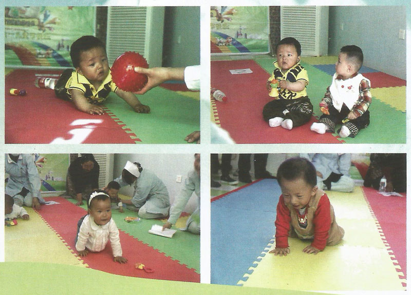 “宝宝乖,宝宝加油……”,2012年“六”儿童节那天,阜康妇产儿童医院举办的首届“宝宝爬爬乐”活动现场热闹非凡,近20名1岁左右的宝宝在阜康妇产儿童医院宝宝游泳中心进行了爬行较量,随后又进行了多项亲子活动游戏。在活动过程中,宝宝们有的精神抖擞、活力四射,有的则十分害羞,躲在妈妈的怀里,还有的拿着玩具自娱自乐,很是开心…而宝宝们或可爱、或笨拙的动作也引得护士和妈妈们的阵阵欢笑。