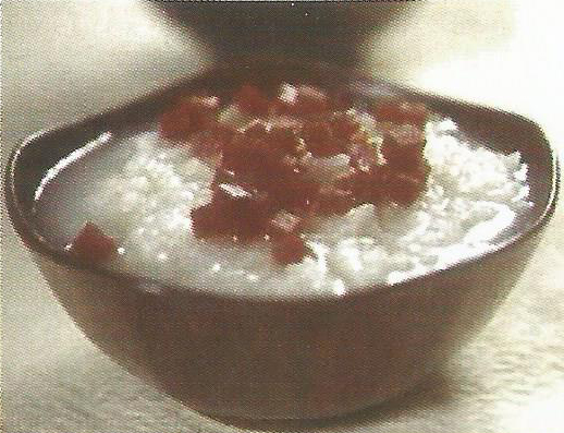 【做法】生地黄(鲜品洗净细切后,用适量清水在火上煮沸约30分钟后,滗出药汁,再复箭煮一次,两次药液合并后浓缩至100ml,备用。将大米洗净煮成白粥,趁热加入生地汁,搅匀食用时加入适量白糖调味即可。