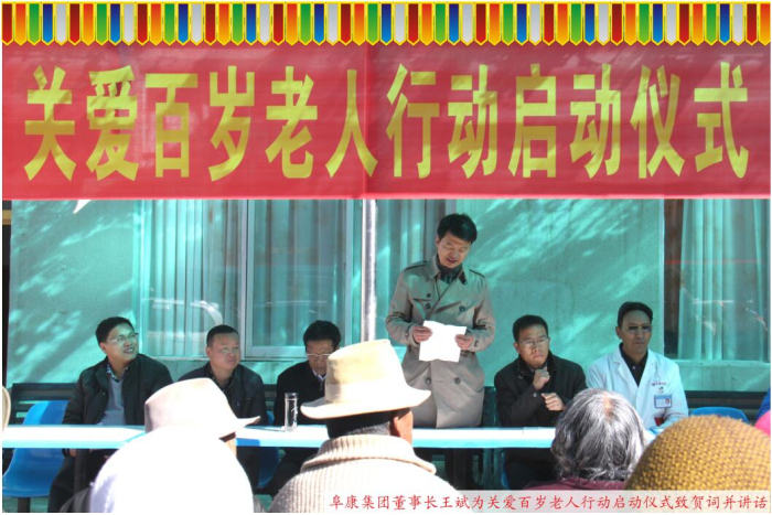 西藏高寒缺氧,自然环境恶劣。60多年前,这里的人均寿命才35.5岁。然而到了2012年,光拉萨的七县一区就有16位百岁老人,正是这些百岁老人,见证了西藏翻天覆地的巨变,他们是全社会的宝贵财富,更是西藏从贫穷落后走向繁荣富强的亲历者、见证者。在全国人民喜迎党的十八大胜利召开之际,西藏阜康(国际)健康体检中心与拉萨市民政局老龄办组织发起了“关爱百岁老人行动”。此次行动历时16天,里程2000多公里,寻访了拉萨七县一区十一位百岁老人,不仅为每位老人送上了精心准备的三千元现金、五千元健康体检卡、一个便携式氧气瓶、一个便携式血压仪,还为他们送上了免费义诊和相关药品。王斌董事长参加了此项活动的启动仪式,嘎布院长、张德才院长亲自带队为每一位百岁老人做了常规的身体检查,并送上了药品和祝福。