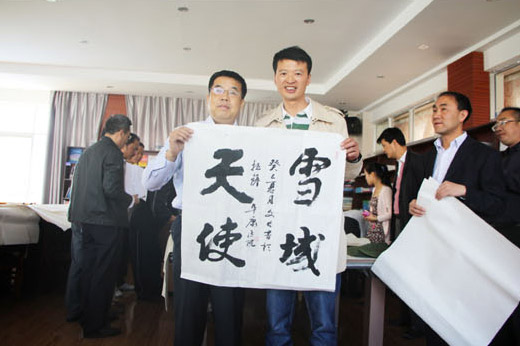 董昭礼主席对此非常高兴地说:“感谢在西藏工作的安徽人士的热情款待,也感谢阜康集团为我们提供书画交流的场所,更感谢王斌董事长的细心照顾。扎西德勒!
