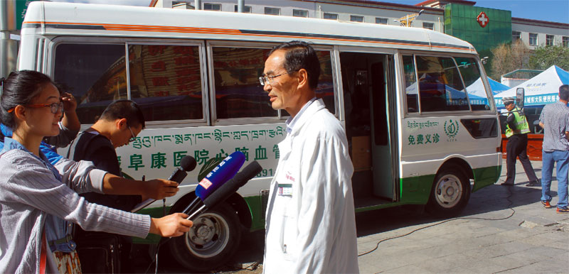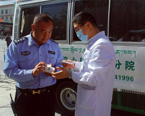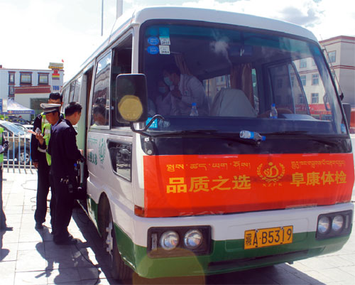 2014年6月1日上午,西藏阜康(国际)健康体检中心派出免费体检车,为拉萨市公安局交警队东西南北郊的执勤民警们及女子中队做了免费体检。