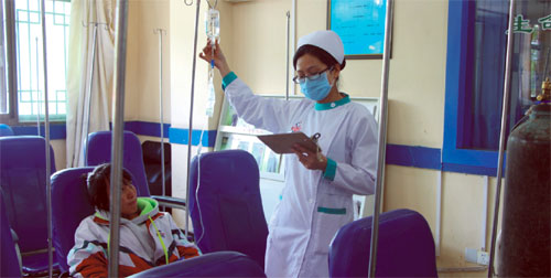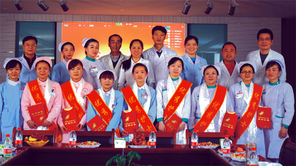 接下来对在这一年里表现优秀的7名护士进行了表彰,她们分别是李尚春、次仁、李敏、徐秀娟、罗国波、曹红、龙芬。院领导为他们颁发了荣誉证书、奖金,给他们敬献哈达并合影留念。获奖护士代表李尚春、罗国波、曹红分别进行了发言。最后由李君副院长对大会作总结,在肯定我们工作的同时也提出了新的要求。希望在未来的时间里我们全院医护人员以更高层次的服务水平嬴得患者的满意。为医院改革发展作出更大的贡献。