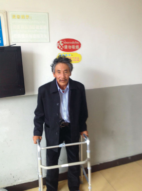 2014年06月25日,59岁的巴旦老人,不远数千公里,辗转数日来到我院。此时老人行走困难,手中的拐杖早已磨损严重,勉强行走带来的疼痛使老人消瘦的脸上满是痛苦。老人此行的唯一目的便是治愈伴随数十年的病痛,丢掉拐杖,自如地行走。