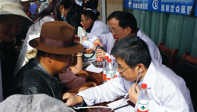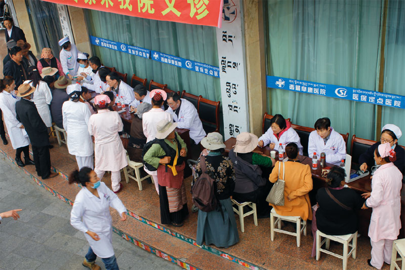 2014年9月29日,8位来自内地各大医院的专家在娘热路阜康医院门口为市民义诊。阜康医院业务副院长张治说:“原本有14位专家来参加义诊,可是因为几位有高原反应,最后只有这8位老师来到现场。”