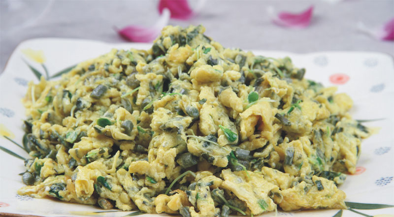 每年春季谷雨前后,香椿树的嫩芽冒出苔了。几乎每家每户都计划着要吃一顿香椿炒鸡蛋。会爬树的,直接爬上枝头去摘取最嫩的那一簇;菜市上也偶尔会有人提着篮子叫卖,小小的一束,整整齐齐地摆成一排,边缘绯红的叶子隐隐散发着香气。香椿炒蛋,曾经是最好的下酒菜,用水焯过的椿芽切得细细的,拌着蛋浆,在油锅里炒熟,什么调料都不用,只下点盐,那股独特的味道就足以让人齿颊留香。