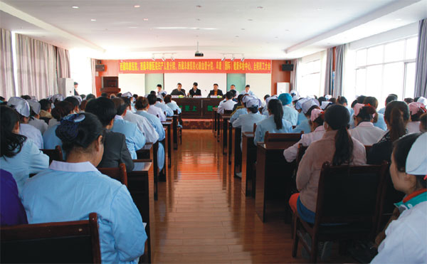 2015年度首次全院职工大会在西藏阜康医院妇产儿童分院四楼会议室召开。本次会议的主要议题有:一、王斌董事长作2015年度工作安排;二、王斌董事长向陈彬总经理颁发“阜康医药发展有限公司总经理” 聘书;三、陈彬总经理述职;四、嘎布院长作总结。
