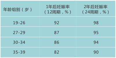 根据上述结果,超过80%的夫妇在女性年龄<40岁,未采取避孕措施,规律性生活(每周2次)的情况下一年内会怀孕;第一年未怀孕者,有一半将在第二年内怀孕。因此,生育年龄夫妇在性生活正常,而1年仍未怀孕时,可以进行生育咨询,或关于不孕的初步检查,推荐夫妇同时就诊。对于女性年龄超过36岁,试孕半年不孕;或是存在不孕风险,如月经不调者,建议及时就诊,由生殖专科的医师提供生育咨询。