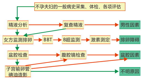 (图:不孕夫妇病因诊断的流程图)