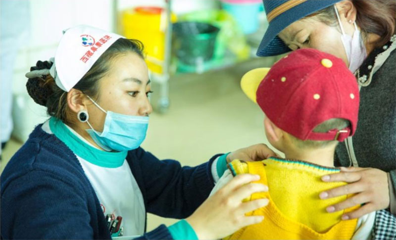 来到输液处,里面已坐满,过道里也是一长排。真是河里没鱼市上看,每天居然有这么多人生病。我在过道末端的一张椅子上坐下。一会儿,来了位护士,喊名字,问年龄,接着挂瓶用橡皮管扎手臂拍手背找静脉血管。在西藏,核对身份要姓名与年龄兼顾才可能准确,因为这里的重名率有的高达20%。喊一句旦增,有可能几个男子同时应答;叫一声拉珍,几个女性一起说我在这里;还有单看名字分不出性别的,如男尼玛、女尼玛……