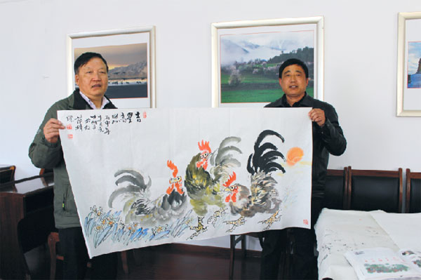 3月28日受自治区文联党组书记兼副主席沈开运邀请陈明文先生在自治区文联会议室作文化交流。交流会上陈明文先生展示了自己的近期作品,沈开运主席代表自治区文联收录了其画作《吉星高照》。
