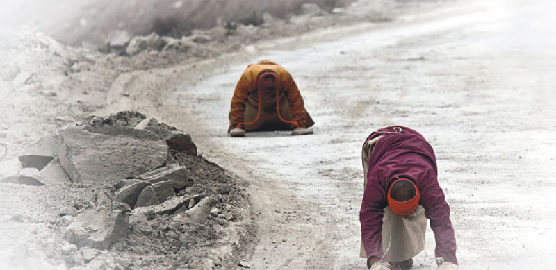 这是快乐美好的七个月,这七个月我们度过了拉萨舒适的夏季、绚丽的秋天、干燥而阳光灿烂的冬季,领略了雪域高原的大美风光和藏区神圣的宗教人文景观。五彩的经幡在湛蓝的天空下飘扬、清澈见底的高山湖泊在明媚的阳光下泛着七彩的波光,高耸入云的雪山让人仰望;喇嘛红衣、匍匐在朝圣路上的信徒,在西藏这片热土上屹立着坚定的信仰。我不懂他们,我只是静静看着他们,在目光相遇的时候,给一个微笑,我便得到了发自心底的快乐、满足和信任。在他们面前,一切都变得简单、虔诚、付出也是一种快乐。认识了车队的巴次,知道了巴次的一些故事,留心着他的言行,我知道了一个普普通通的藏族青年,有着佛一样的慈悲心,他就那样付出着、快乐着……我被感动着,感染着。