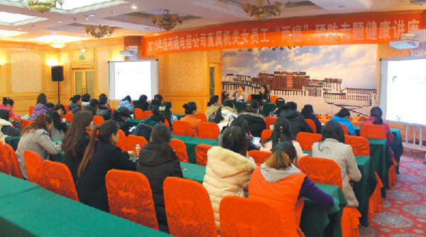 2016年3月7日下午,在“三八妇女节”即将来临之际,我院李君副院长受邀于西藏电信公司及中国邮政储蓄银行西藏自治区分行进行女性健康知识、备孕二胎妈妈孕前检查及“两癌”筛查健康知识讲座,并就女性“宫颈癌”、“乳腺癌”两大癌症预防筛查等健康知识作出详细讲解。受到了在场学员的一致好评。