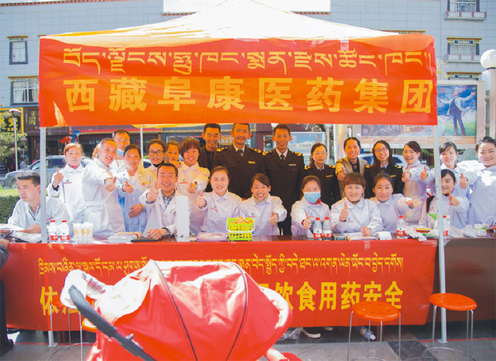 2016年10月14日上午,西藏阜康医药发展有限公司组织16名医护人员于拉萨市宇拓路迎宾馆旁建立免费义诊宣传点,积极参加由拉萨市食品药品监督局牵头组织的“全国安全用药月”主题宣传活动,宣传药物滥用的危害、普及安全用药知识、引导广大社会群众树立安全合理用药的意识,同时免费为过往的群众测血压、血糖,免费看病及发放维生素、钙片、风湿及心脑类等价值一万两千余元药品。