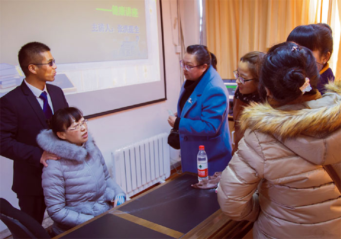 2016年11月30日下午,西藏阜康医院针灸理疗科张洪医生受邀于拉萨市第三小学开展“颈椎及其衍生疾病的危害和防治”理疗健康知识专题讲座,现场为教师们进行诊治、按摩,并传授实用的自我按摩手法,受到大家一致好评。